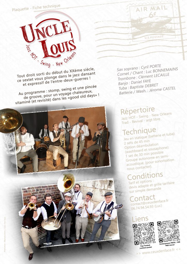Uncle Louis c’est un jazz chaud et granuleux du début du siècle, un peu exubérant parfois, toujours généreux !