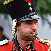 Costume rouge et plumeau assorti, les voila tout droit sortis de votre image d’Epinal : La fanfare !